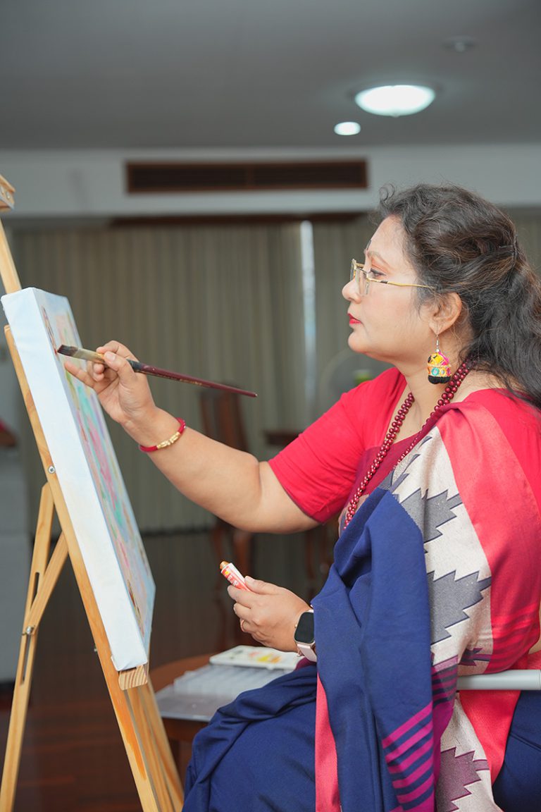 As a self-taught artist, she explored varieties of traditional Indian art forms across various corners of the country. As a result, she is creating unique traditional art forms such as Madhubani painting, Odisha Patachitra work, Tanjore art, broken glass painting, and Ceramic artwork and revolving her art form with a surrealistic contemporary style.