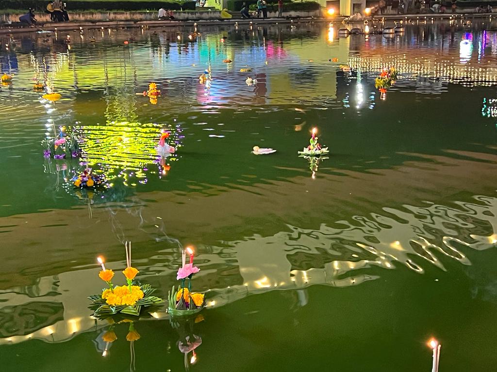 Other than Dev Deepavali, this also reminded me of Bali Yatra, which is celebrated in Odisha. I could see the similarities between Bali Yatra and Loy Krathong as lighting the lamp and floating a boat is common to both festivals. To me, this was another symbol of our civilizational links. As an agrarian society, water played a pivotal role in the Thai way of living since ancient times. The element of water provides sustenance, while rivers, canals, and oceans acted as the main modes of transportation through a major part of Southeast Asian history. The main purpose of Loy Krathong is to pay respect and thank the ‘Goddess of Water’ for a year’s worth of her abundant supply and ask for an apology for polluting the waters. Surprisingly, the Goddess of Water in Thai tradition is also Maa Ganga and known as Phra Mae Khongkha. Nowadays, it is also a way to get rid of negativity gathered during the previous year and welcome good fortune in the coming year.
